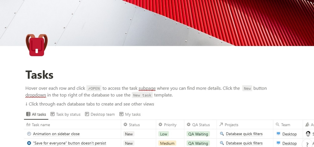We use this product management system to track all product and engineering projects, as well as communicate updates to the rest of the company. It has four basic parts: Teams, Tasks, Projects, and Weekly updates. They’re all linked together, making it easier to keep investing in this system.
